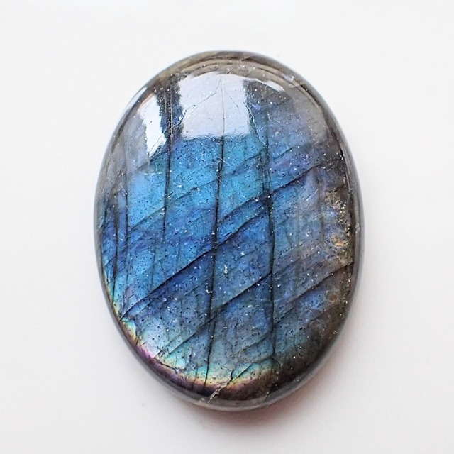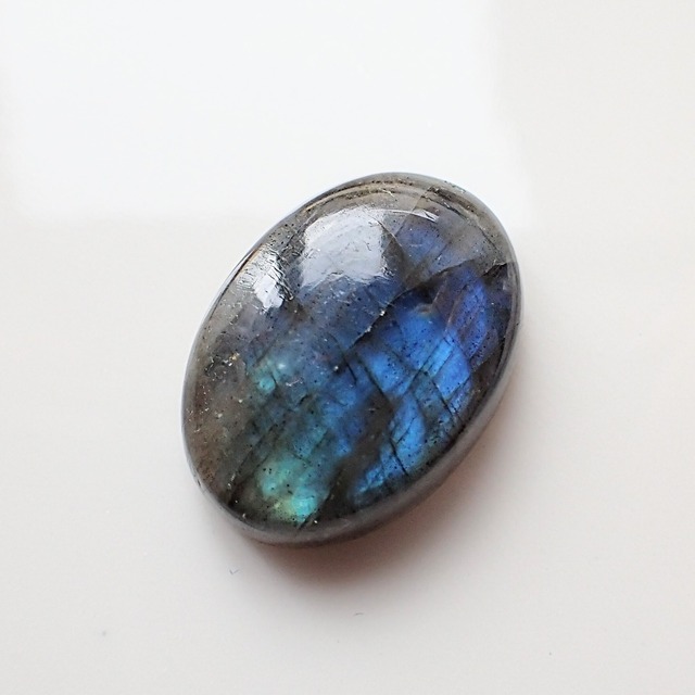 ※Pay IDアプリからご購入のお客様は、購入前にショップ情報をご必ずお読み下さい。 ※ブラウザ版からご購入のお客様は、ご購入前にABOUTを必ずお読み下さい。 ブラウザ版ABOUTへ→https://stonedrawer.thebase.in/about ラブラドライトのルースです。 ラブラドライトは、カナダのラブラドル半島で産出するためこの名前がつけられました。 光の加減や見る角度によって、蝶の羽のような輝きを見ることができます。 この独特の美しい輝きは「ラブラドレッセンス」と呼ばれています。 英名:Labradorite、和名:ラブラドル長石、曹灰長石。 サイズ:縦約25.3×横約22.4×高さ約7.4(mm) サイズは±0.5mm以内の誤差が含まれます。 ■天然石について 画像では確認出来ない天然石特有の自然の色ムラ、インクルージョン(内包物)、クラック(ひび)、表面の凹凸等がある場合がございます。 これらは不良品の理由に当たりませんので、御理解の上ご購入下さい。 人工的な処理(加熱・放射線照射・含浸・染色等)について記載の無いものに関しては不明です。 人工的な処理が施されていないという保証は致しかねます。 ■商品画像について 商品画像の色味はご購入者様の閲覧環境によります。実物とイメージが異なる場合がございます。 又、天然石は光の強さや照明の種類、自然光下で見た場合、光の角度などにより色の見え方が異なります。 なるべく実物に近い色で撮影出来る様に努力しておりますが、違いを無くす事は不可能ですので、御理解の上ご購入下さい。 上記理由により、「思っていたイメージと実物が違った」「実物と画像の色味が違う」等の理由による返品はお受け出来ません。 撮影備品は商品に含まれません。 ■その他、詳しくはアプリ版ショップ情報、又はブラウザ版ABOUTに詳しく記載しておりますので必ずご参照の上ご購入手続きへお進み下さい。 ご購入頂きました時点で、全ての記載事項をご了承頂いたものとさせて頂きます。