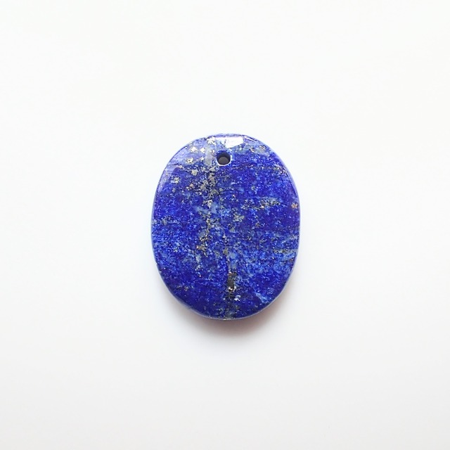 ※Pay IDアプリからご購入のお客様は、購入前にショップ情報をご必ずお読み下さい。 ※ブラウザ版からご購入のお客様は、ご購入前にABOUTを必ずお読み下さい。 ブラウザ版ABOUTへ→https://stonedrawer.thebase.in/about ラピスラズリの孔開きルースです。 ルース上部に貫通穴が空いています。 かつてラピスラズリの主成分は青金石(ラズライト)とされていましたが、現在では藍方石(アウイン)が主成分であるとされています。 これには2021年に行われた青金石の再定義が関係しています。 世界中のラピスラズリの産地において、ほぼすべての標本に藍方石(アウイン)、方ソーダ石(ソーダライト)、黝方石(ノゼアン)、ウラジーミルイワノフ石、アフガン石(アフガナイト)などが含まれており、青金石が含まれる標本は極めて稀なのだそうです。 ラピスラズリに含まれる代表的な微量鉱物としては金色のパイライトや白いカルサイトがありますが、産地によっては含まれない場合もあります。 英名:Lapis lazuli、和名:瑠璃。 サイズ:縦約18.3×横約14.6×高さ約3.8(mm) サイズは±1mm程度の誤差が含まれます。 ■天然石について 画像では確認出来ない天然石特有の自然の色ムラ、インクルージョン(内包物)、クラック(ひび)、表面の凹凸等がある場合がございます。 これらは不良品の理由に当たりませんので、御理解の上ご購入下さい。 人工的な処理(加熱・放射線照射・含浸・染色等)について記載の無いものに関しては不明です。 人工的な処理が施されていないという保証は致しかねます。 ■商品画像について 商品画像の色味はご購入者様の閲覧環境によります。実物とイメージが異なる場合がございます。 又、天然石は光の強さや照明の種類、自然光下で見た場合、光の角度などにより色の見え方が異なります。 なるべく実物に近い色で撮影出来る様に努力しておりますが、違いを無くす事は不可能ですので、御理解の上ご購入下さい。 上記理由により、「思っていたイメージと実物が違った」「実物と画像の色味が違う」等の理由による返品はお受け出来ません。 撮影備品は商品に含まれません。 ■その他、詳しくはアプリ版ショップ情報、又はブラウザ版ABOUTに詳しく記載しておりますので必ずご参照の上ご購入手続きへお進み下さい。 ご購入頂きました時点で、全ての記載事項をご了承頂いたものとさせて頂きます。