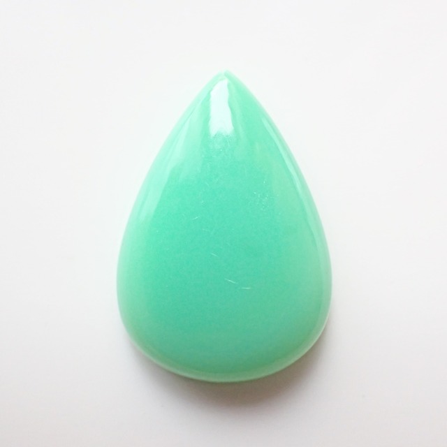 ※Pay IDアプリからご購入のお客様は、購入前にショップ情報をご必ずお読み下さい。 ※ブラウザ版からご購入のお客様は、ご購入前にABOUTを必ずお読み下さい。 ブラウザ版ABOUTへ→https://stonedrawer.thebase.in/about グリーンカルセドニーのルースです。 こちらは染色処理によって人工的にグリーンに染められています。 クリソプレーズを思わせるミルキーで可愛らしいグリーンです。 カルセドニーはアゲートと共に(石英 Quartz)グループの仲間です。 カルセドニーとアゲートは基本的に同じ鉱物なのですが、色むらが少なく一定のものをカルセドニー、縞などの模様があるものをアゲートと呼んで区別しています。 英名:Chalcedony、和名:玉髄(ぎょくずい)。 サイズ:縦約30.6×横約21.0×高さ約7.1(mm) サイズは±0.5mm程度の誤差が含まれます。 ■天然石について 画像では確認出来ない天然石特有の自然の色ムラ、インクルージョン(内包物)、クラック(ひび)、表面の凹凸等がある場合がございます。 これらは不良品の理由に当たりませんので、御理解の上ご購入下さい。 人工的な処理(加熱・放射線照射・含浸・染色等)について記載の無いものに関しては不明です。 人工的な処理が施されていないという保証は致しかねます。 ■商品画像について 商品画像の色味はご購入者様の閲覧環境によります。実物とイメージが異なる場合がございます。 又、天然石は光の強さや照明の種類、自然光下で見た場合、光の角度などにより色の見え方が異なります。 なるべく実物に近い色で撮影出来る様に努力しておりますが、違いを無くす事は不可能ですので、御理解の上ご購入下さい。 上記理由により、「思っていたイメージと実物が違った」「実物と画像の色味が違う」等の理由による返品はお受け出来ません。 撮影備品は商品に含まれません。 ■その他、詳しくはアプリ版ショップ情報、又はブラウザ版ABOUTに詳しく記載しておりますので必ずご参照の上ご購入手続きへお進み下さい。 ご購入頂きました時点で、全ての記載事項をご了承頂いたものとさせて頂きます。