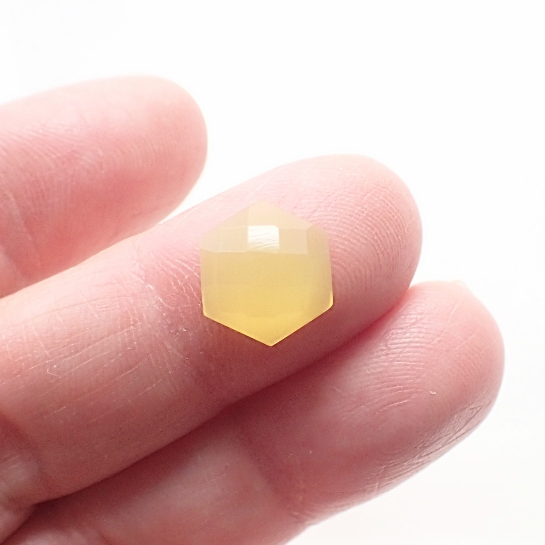 ヘキサゴンシェイプで表面にローズカットが施されています。