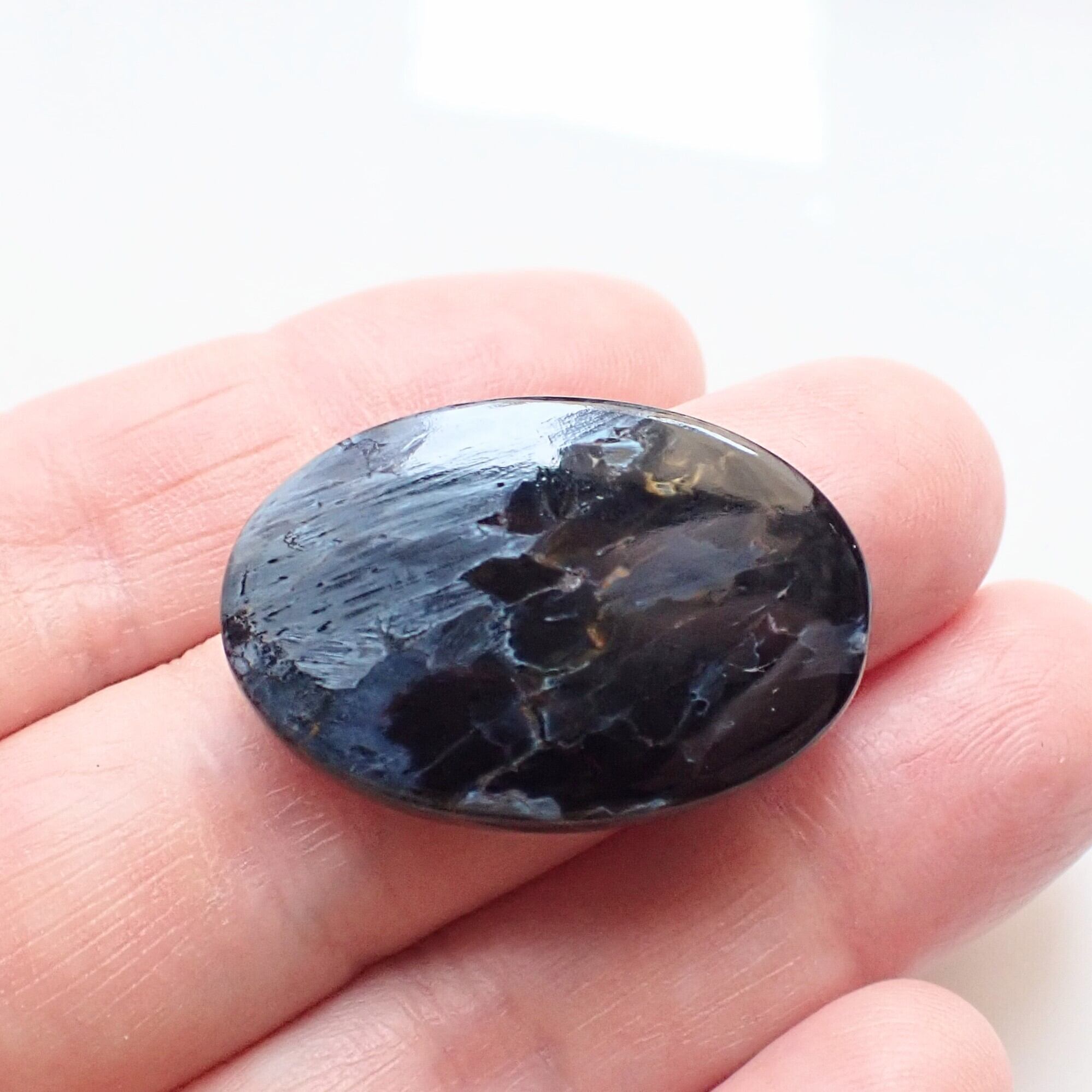 黒ぐろとした波がうねる夜の海のような景色の石です。