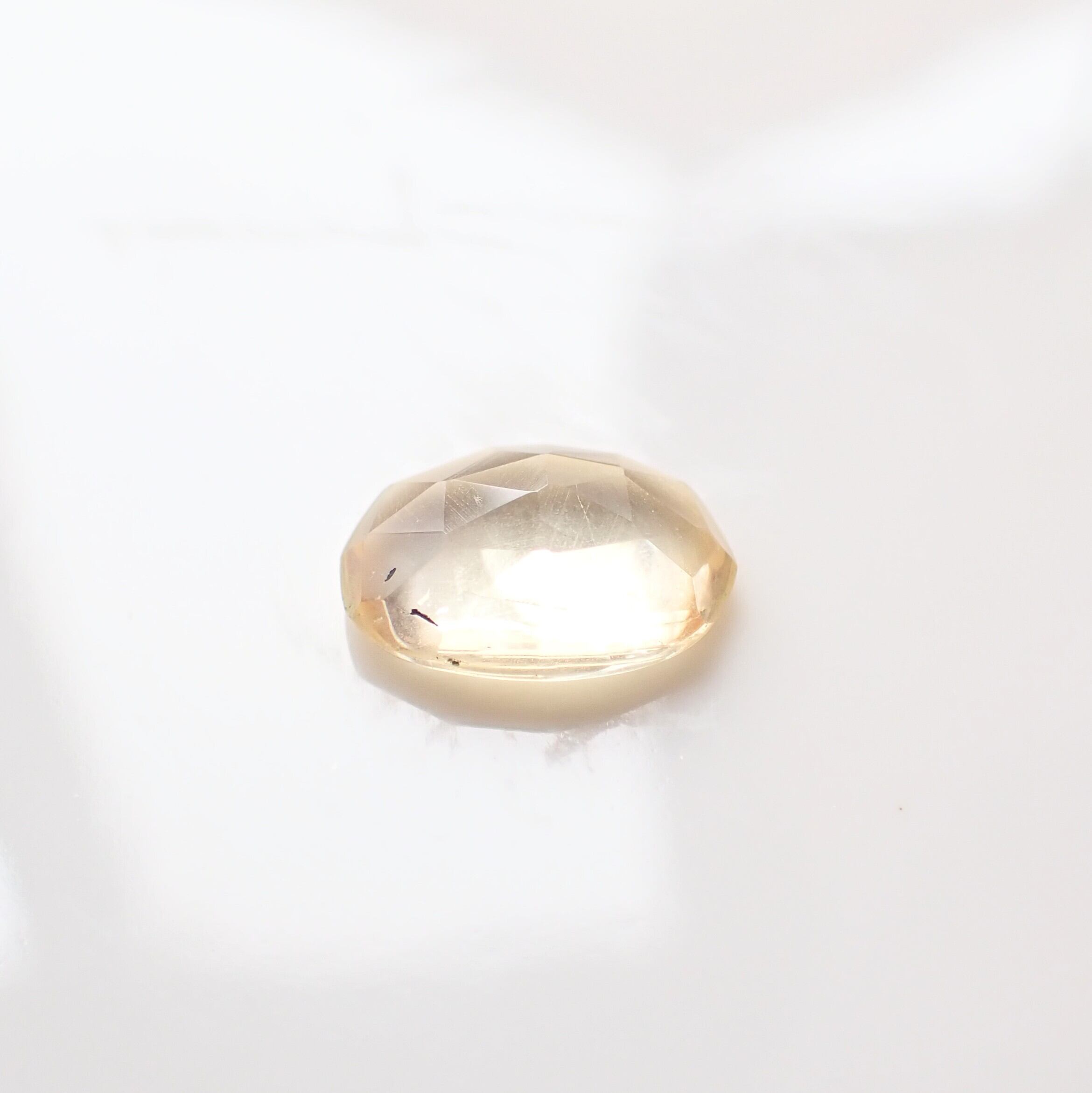 シトリンは黄色~黄金色をした水晶です。シトリンは地中深くに結晶したアメジストが、マグマなどによる熱により黄色く変化したり、水晶に放射線が加わって黄色く変化したものです。しかし、自然に黄色く変化したシトリンは大変希少な為、現在流通しているものはアメジストを加熱(エンハンスメント)して黄色くしたシトリンが主流です。こちらも加熱処理されているシトリンとなります。
