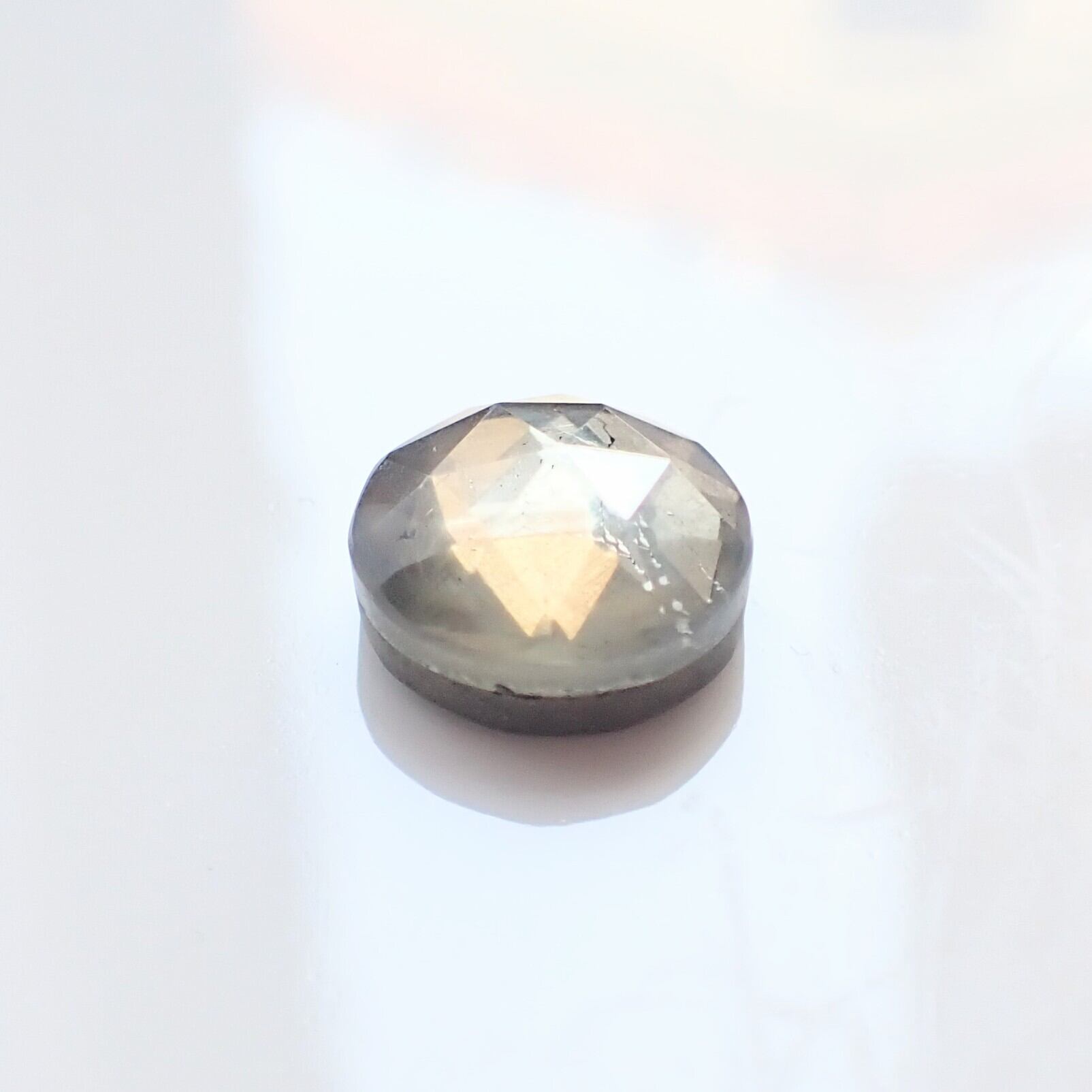 こちらは薄くスライスしたパイライトにローズカットが施されたクリスタルガラスを貼り合わせたものです。