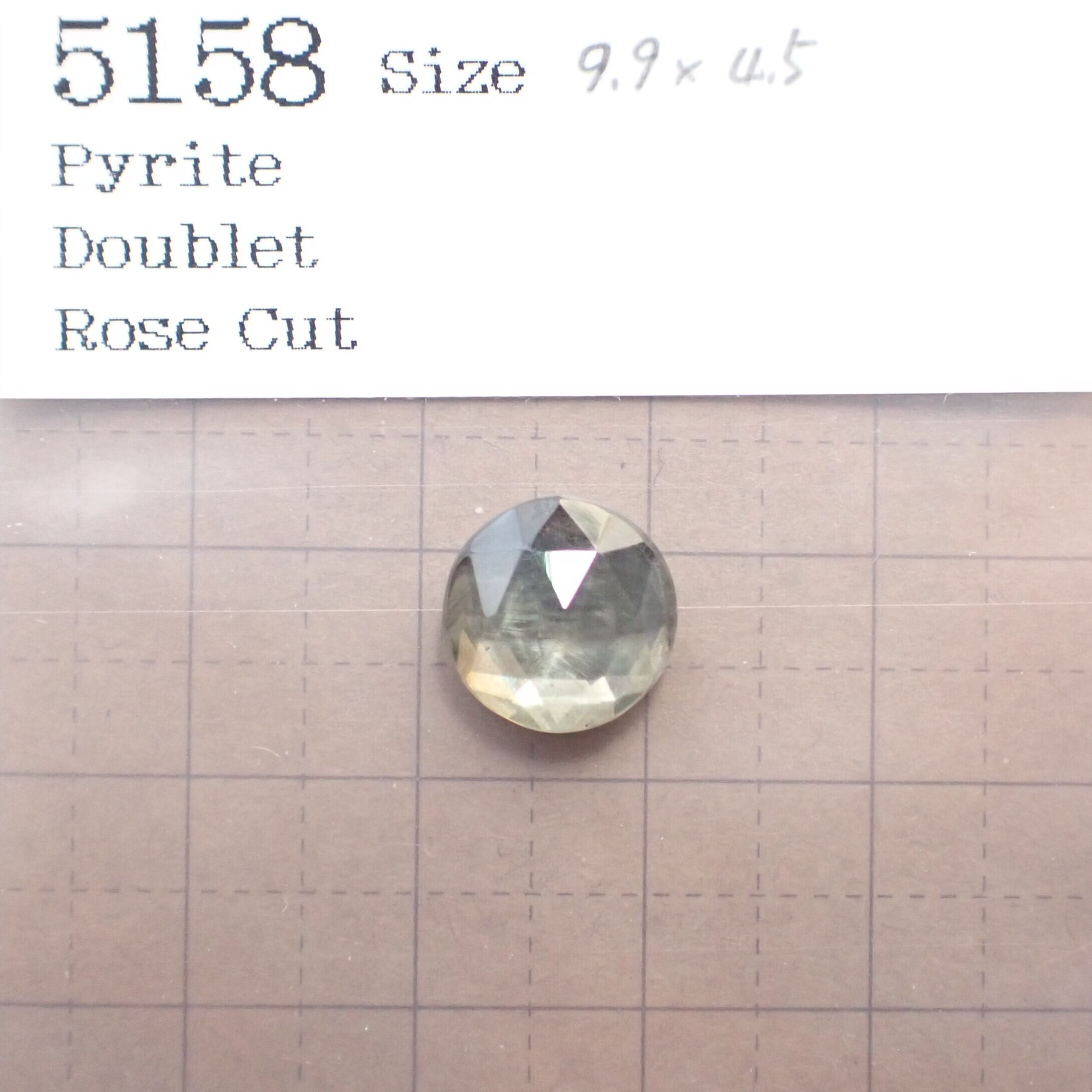 こちらは薄くスライスしたパイライトにローズカットが施されたクリスタルガラスを貼り合わせたものです。