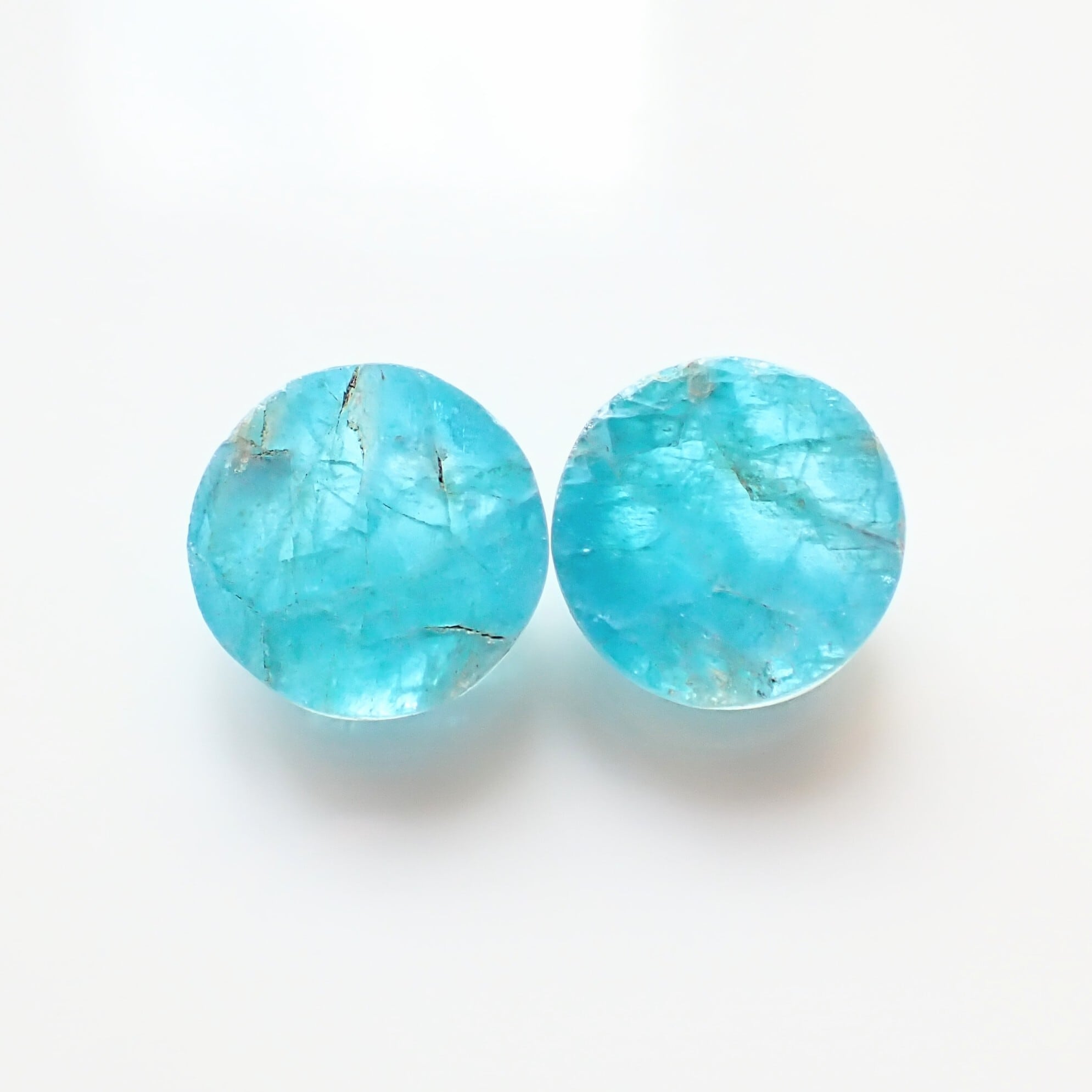 こちらは薄くスライスしたアパタイトにローズカットが施されたクリスタルガラスを貼り合わせたものです。