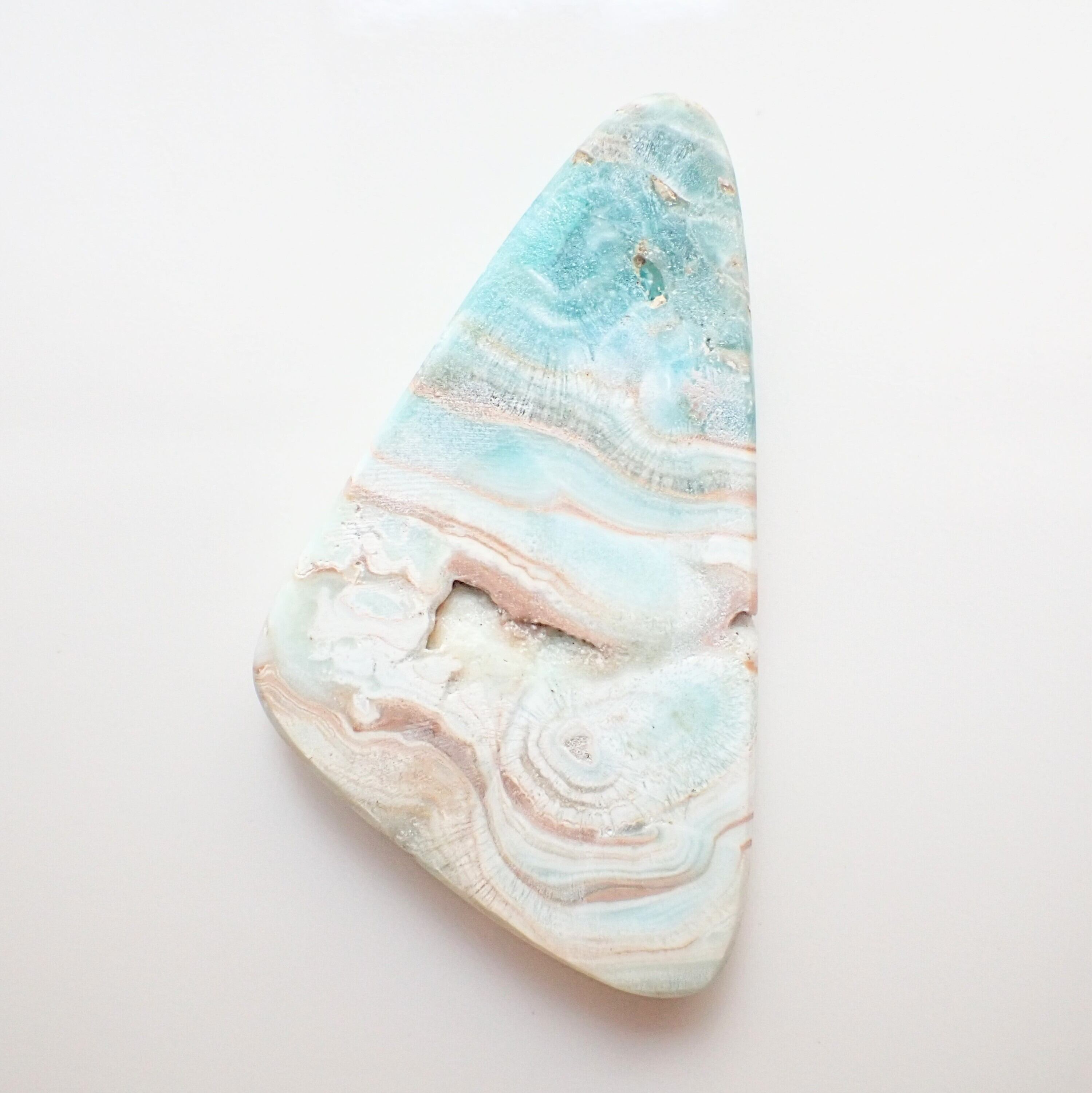近年パキスタンで発見された比較的新しい石で、「カリビアンブルー カルサイト」として流通している場合が多いですが、実際はアラゴナイトです。