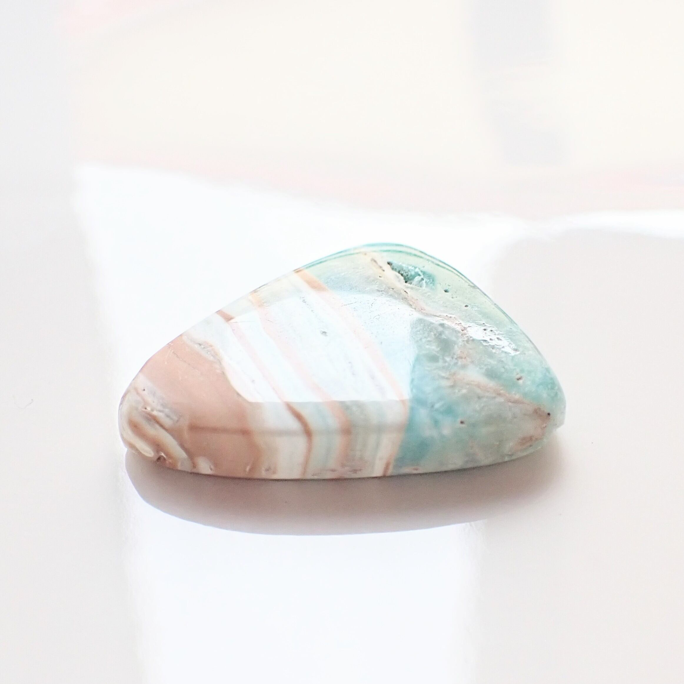 ブルーアラゴナイトはそれほど希少な鉱物という訳ではありませんが、比較的加工品の流通量が少ないせいかルースとしてはレアな部類に入るかもしれません。