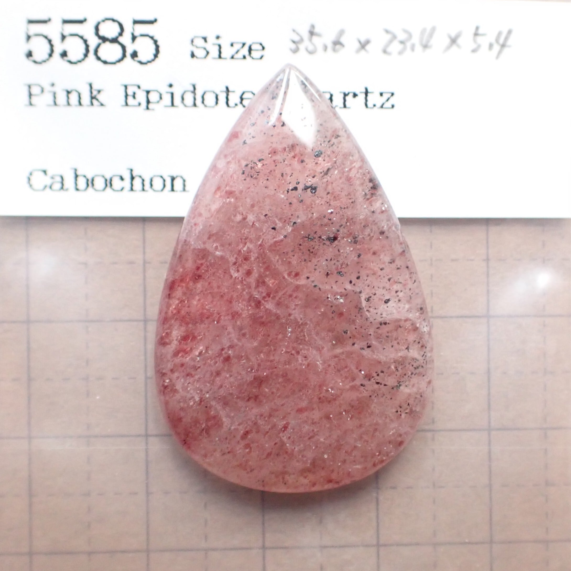 ピンクエピドートインクォーツ(アフリカンストロベリークォーツ)のルースです。