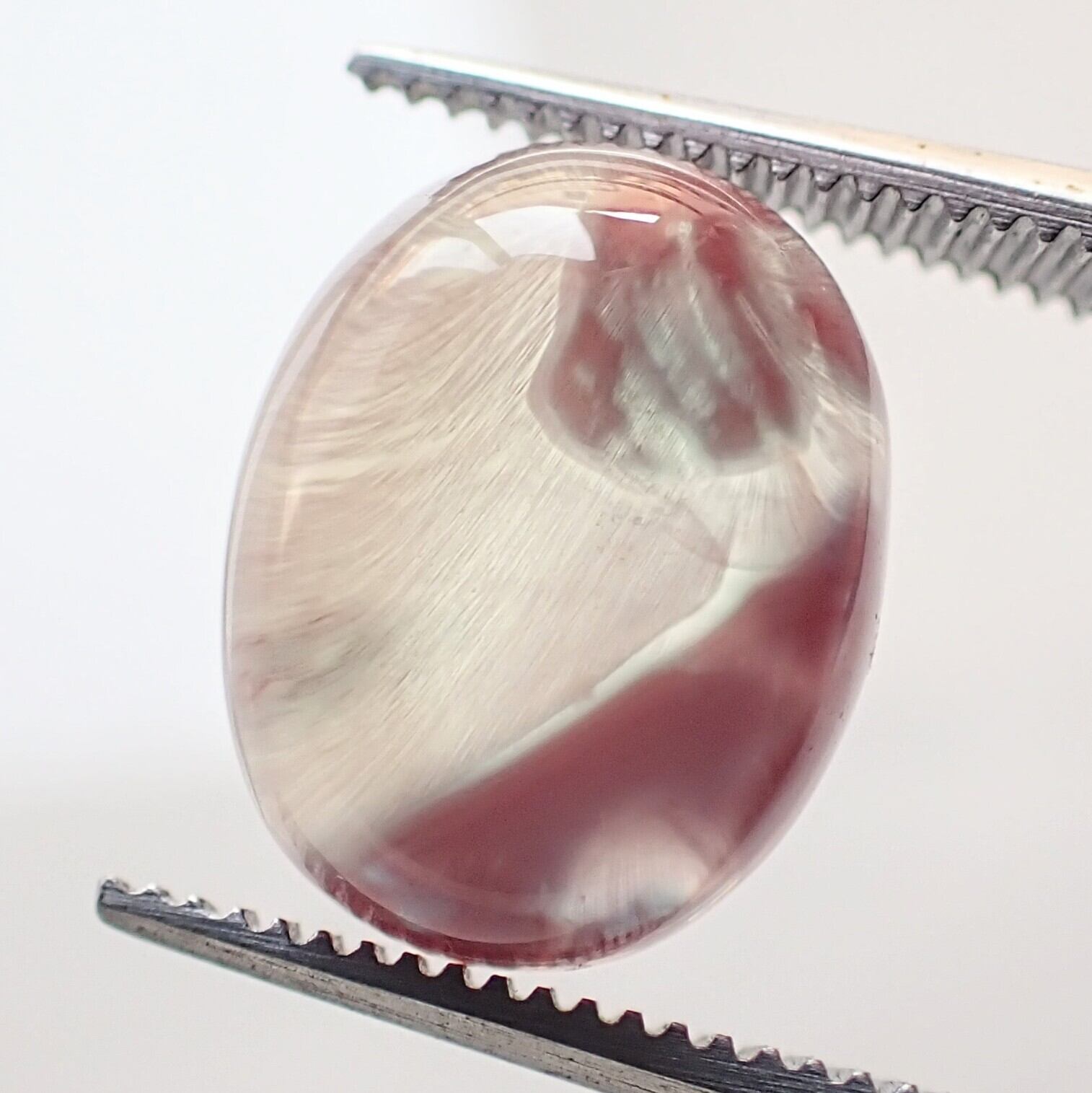 アンデシンは多色性があり、見る角度や光の入る方向によって緑がかって見えたり模様が違うように見えたりします。