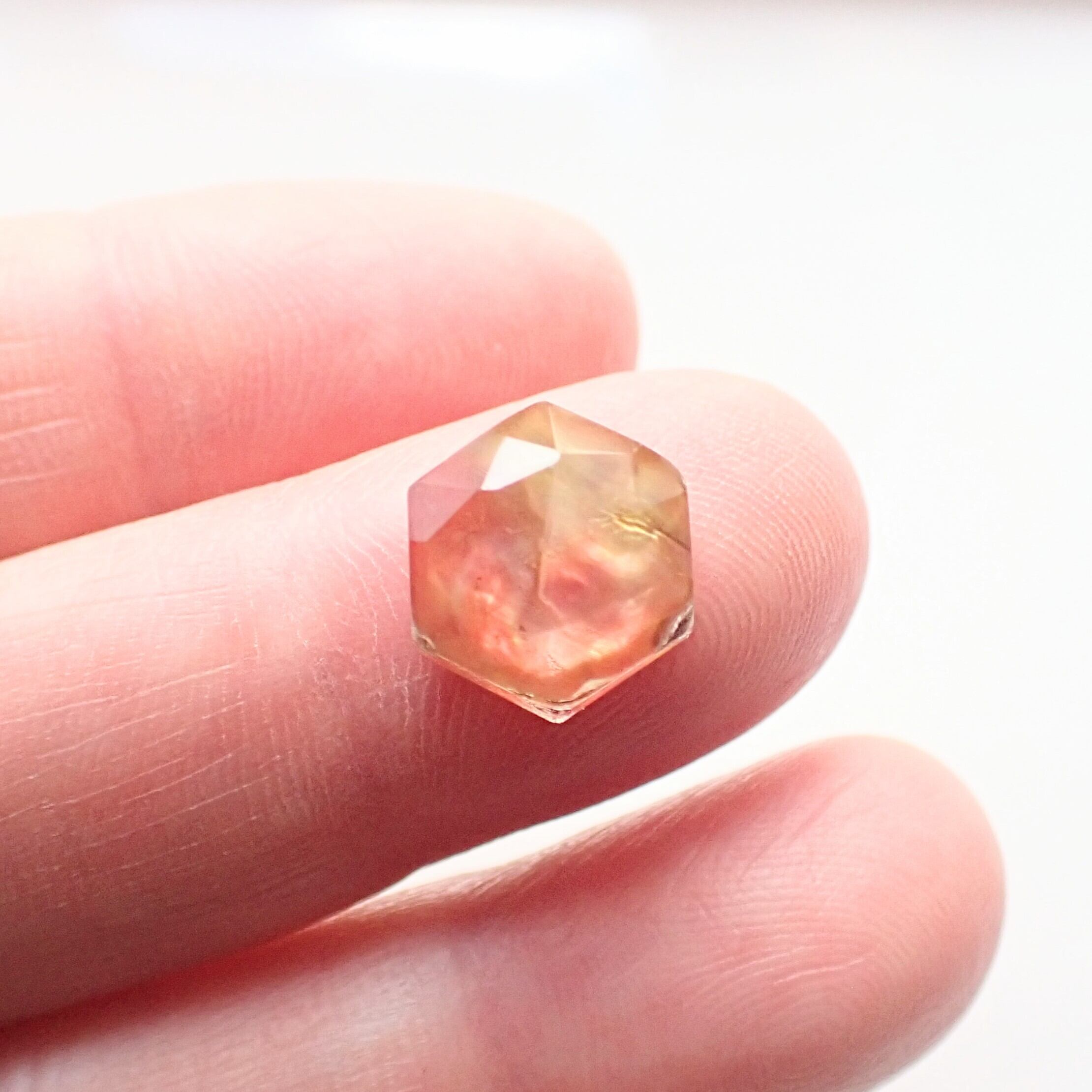ヘキサゴンシェイプで、表面にはローズカットが施されています。
