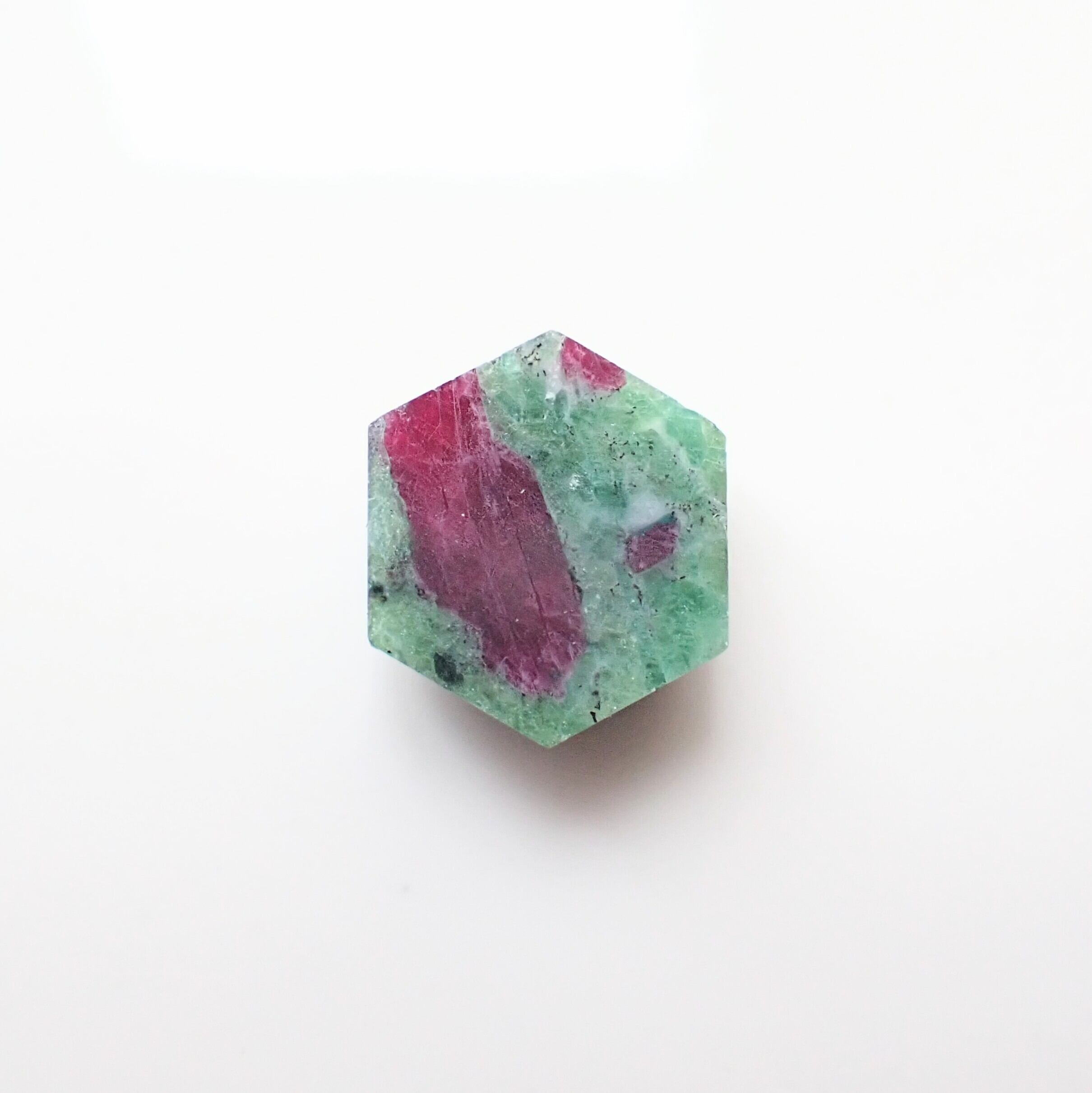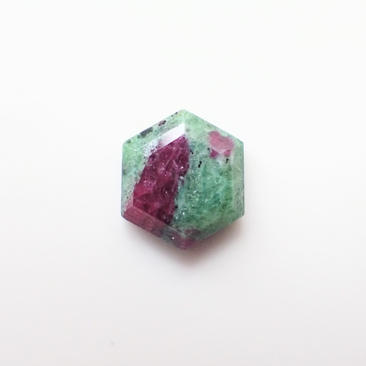 緑色のゾイサイト(灰簾石/かいれんせき)に赤いルビーが鮮やかな、クリスマスカラーなルースです。