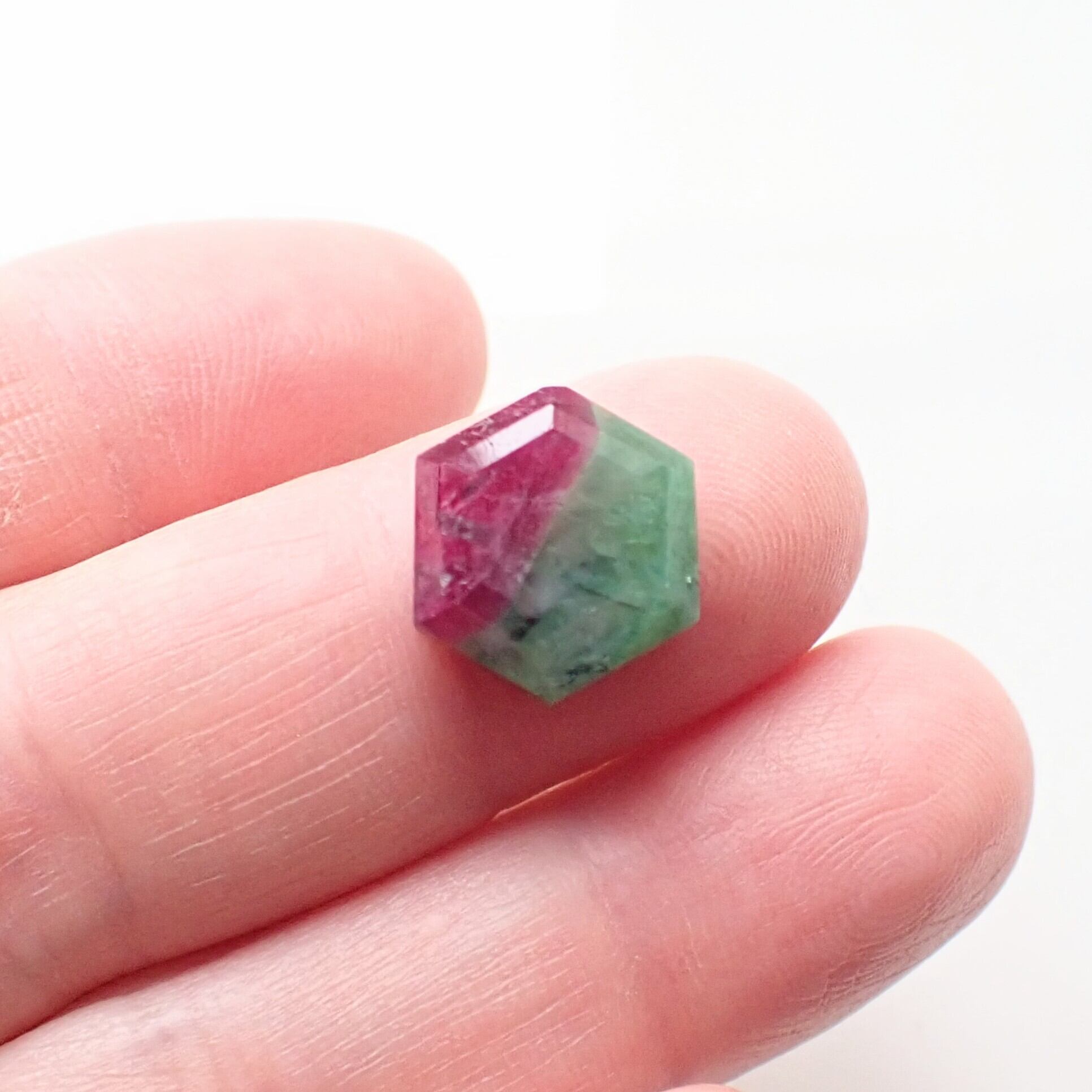 緑色のゾイサイト(灰簾石/かいれんせき)に赤いルビーが鮮やかな、クリスマスカラーなルースです。