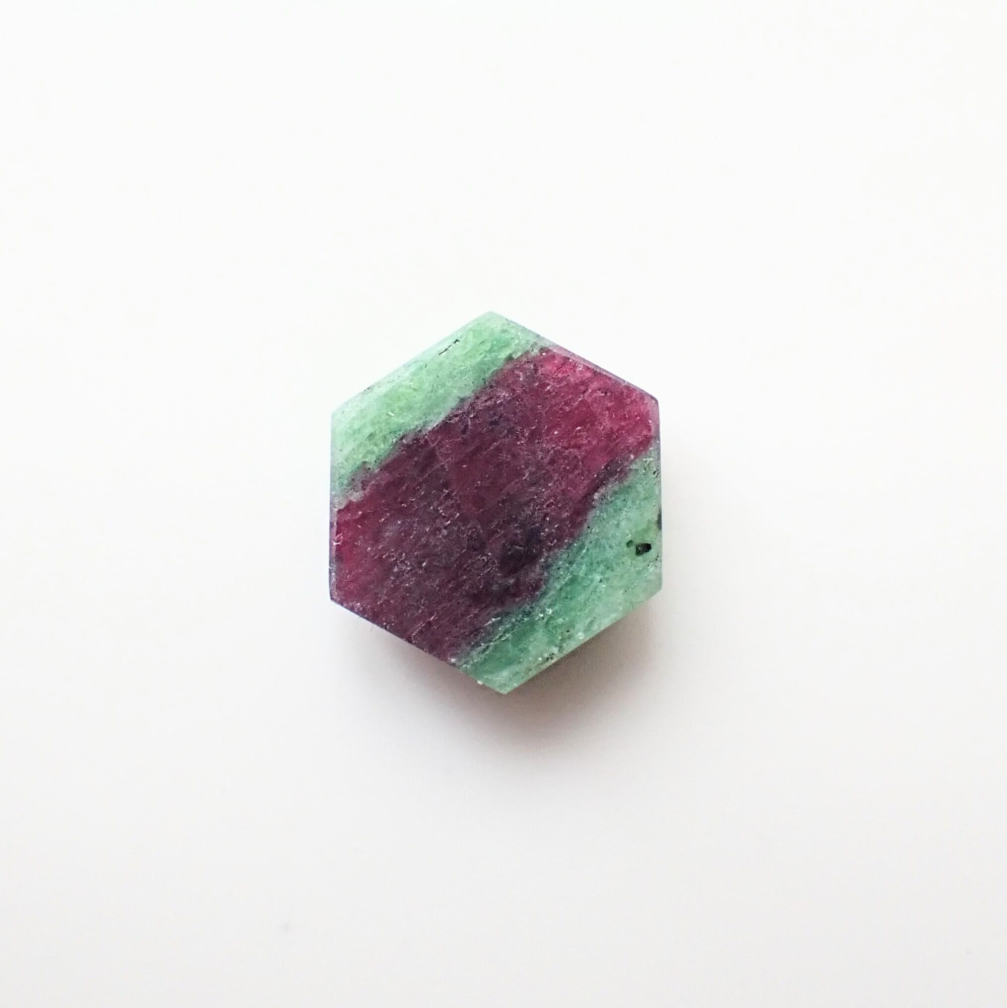 緑色のゾイサイト(灰簾石/かいれんせき)に赤いルビーが鮮やかな、クリスマスカラーなルースです。