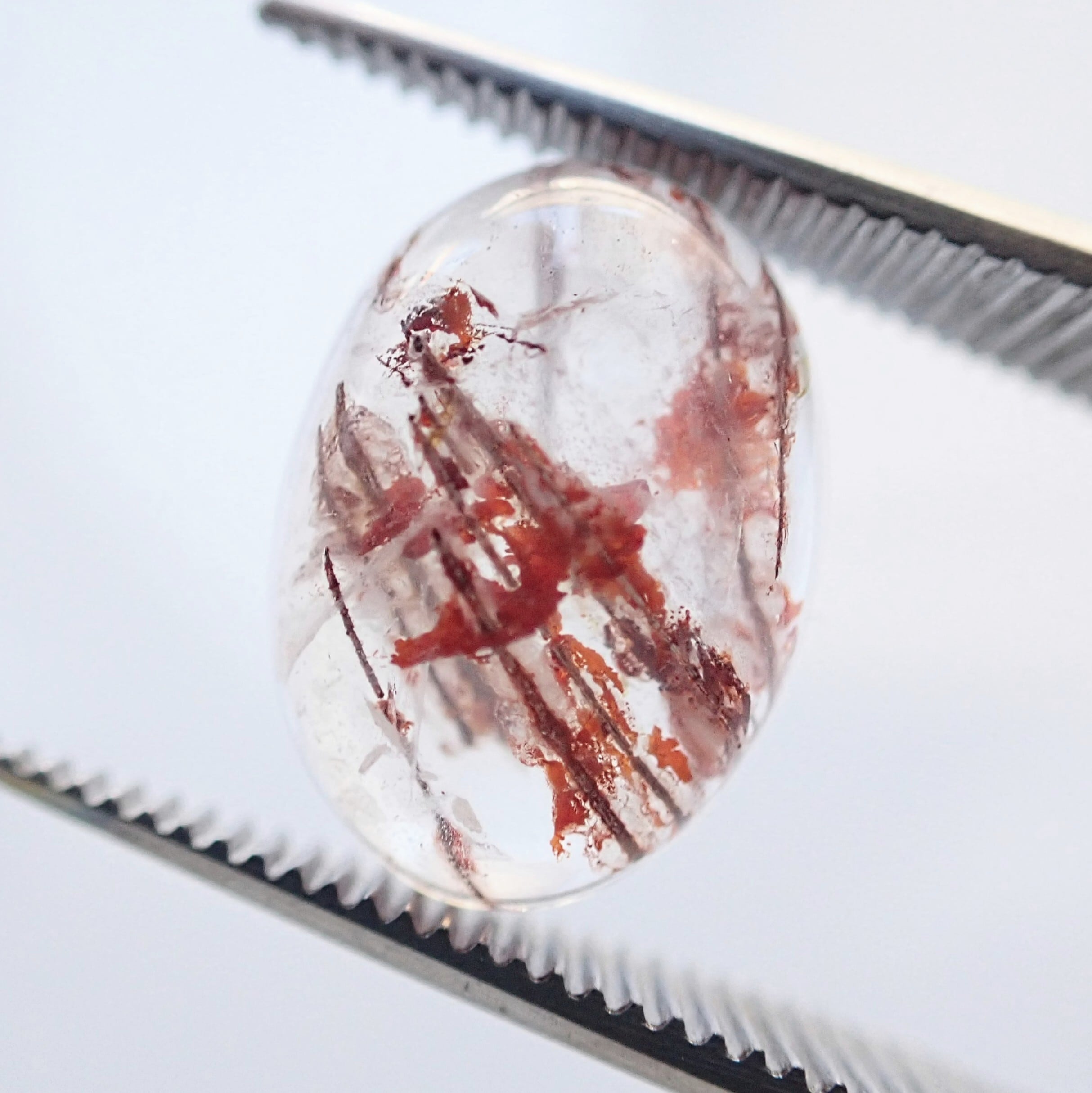 これらの内包物は黄色~黄金色・赤〜褐色をしており、クラックの隙間に入り込んだり針状や毛髪状または繊維状となって水晶の中に現れます。
