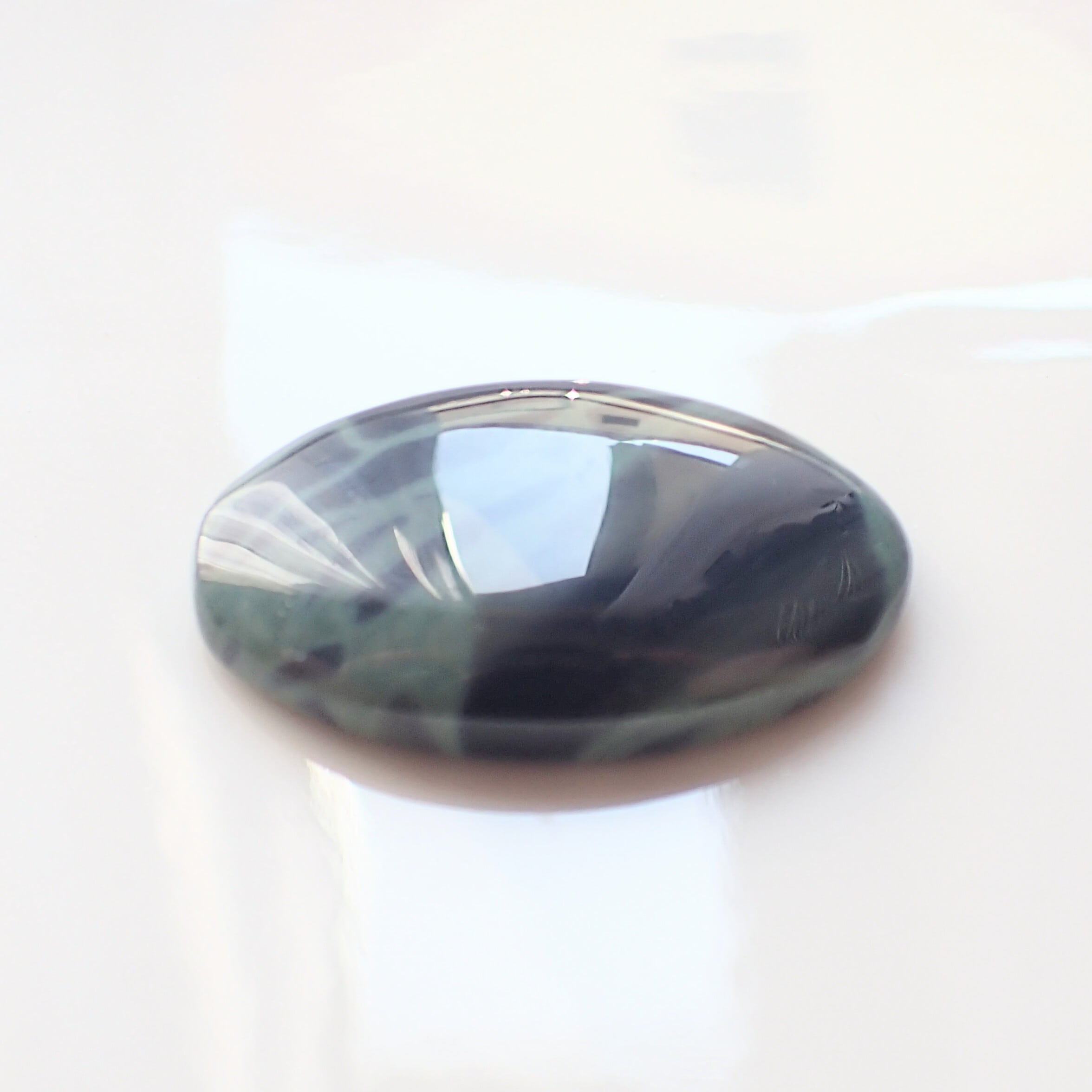 暗闇でひっそりと獲物を待つ蜘蛛の巣のような、はたまた発光生物が揺蕩う深海のようなミステリアスな雰囲気の石です。