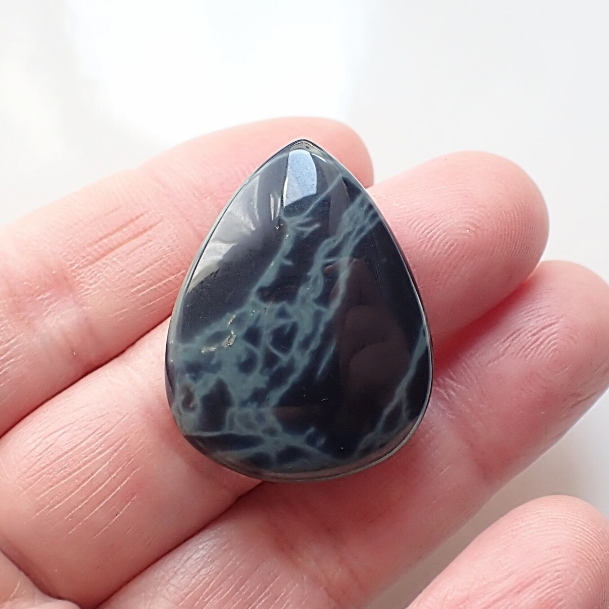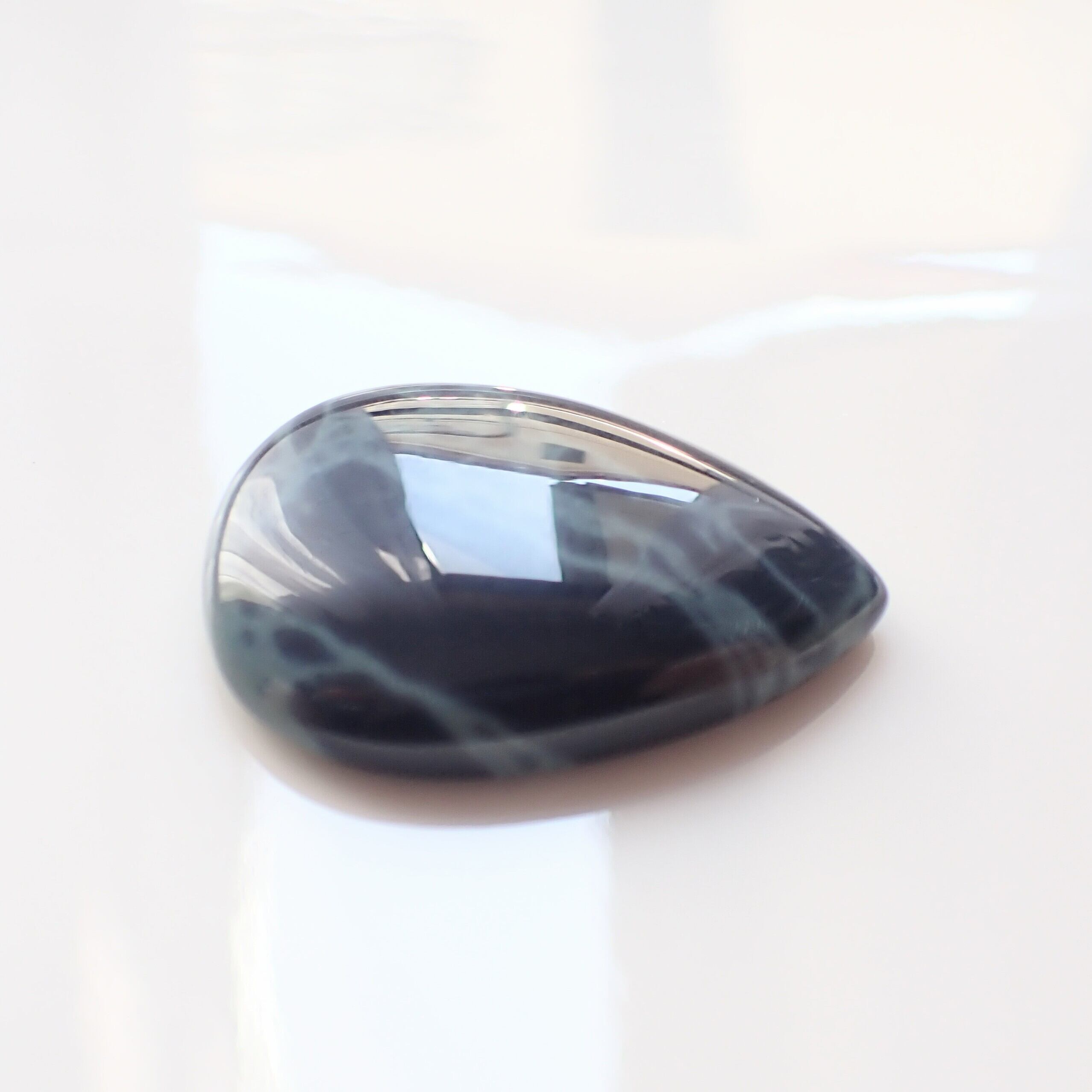 暗闇でひっそりと獲物を待つ蜘蛛の巣のような、はたまた発光生物が揺蕩う深海のようなミステリアスな雰囲気の石です。