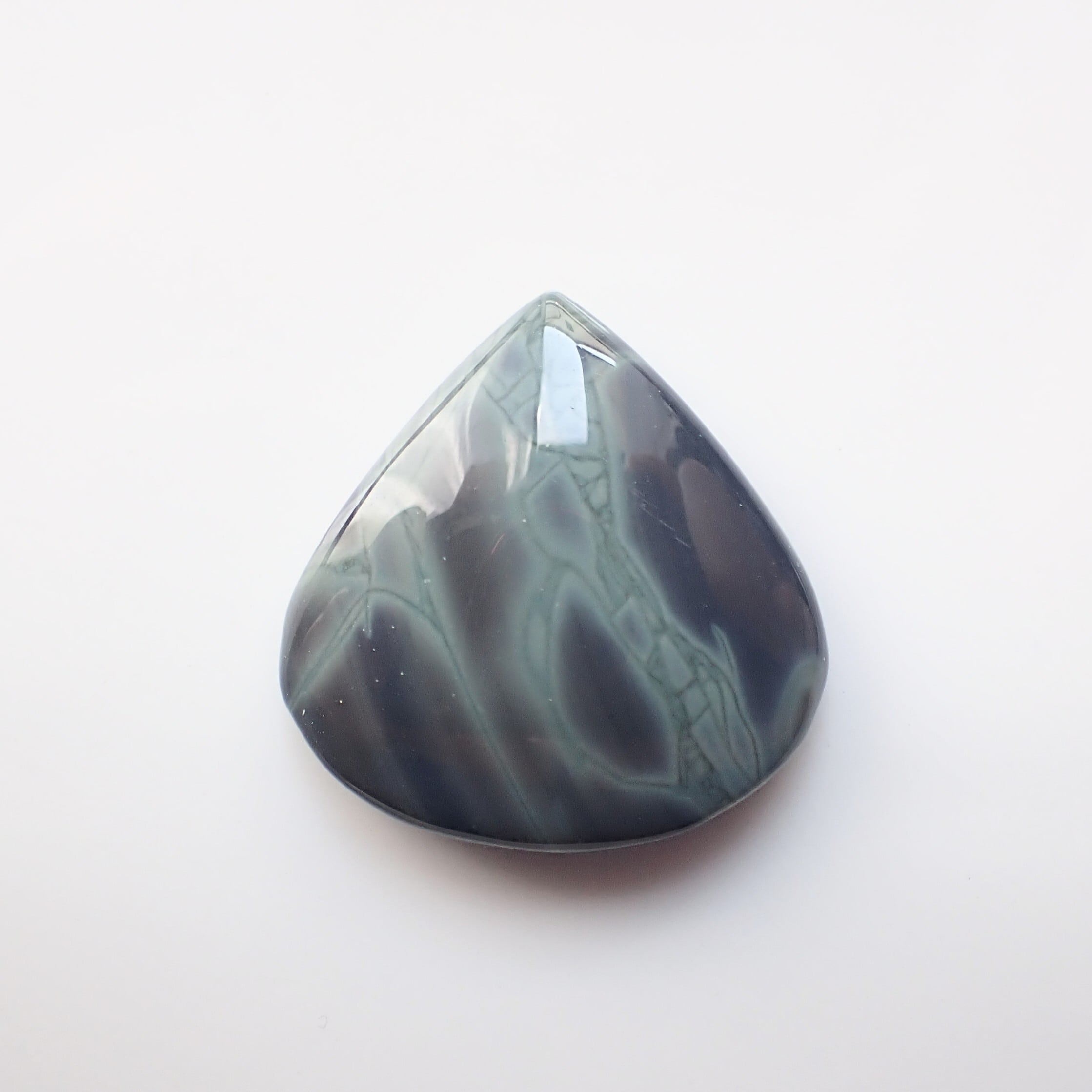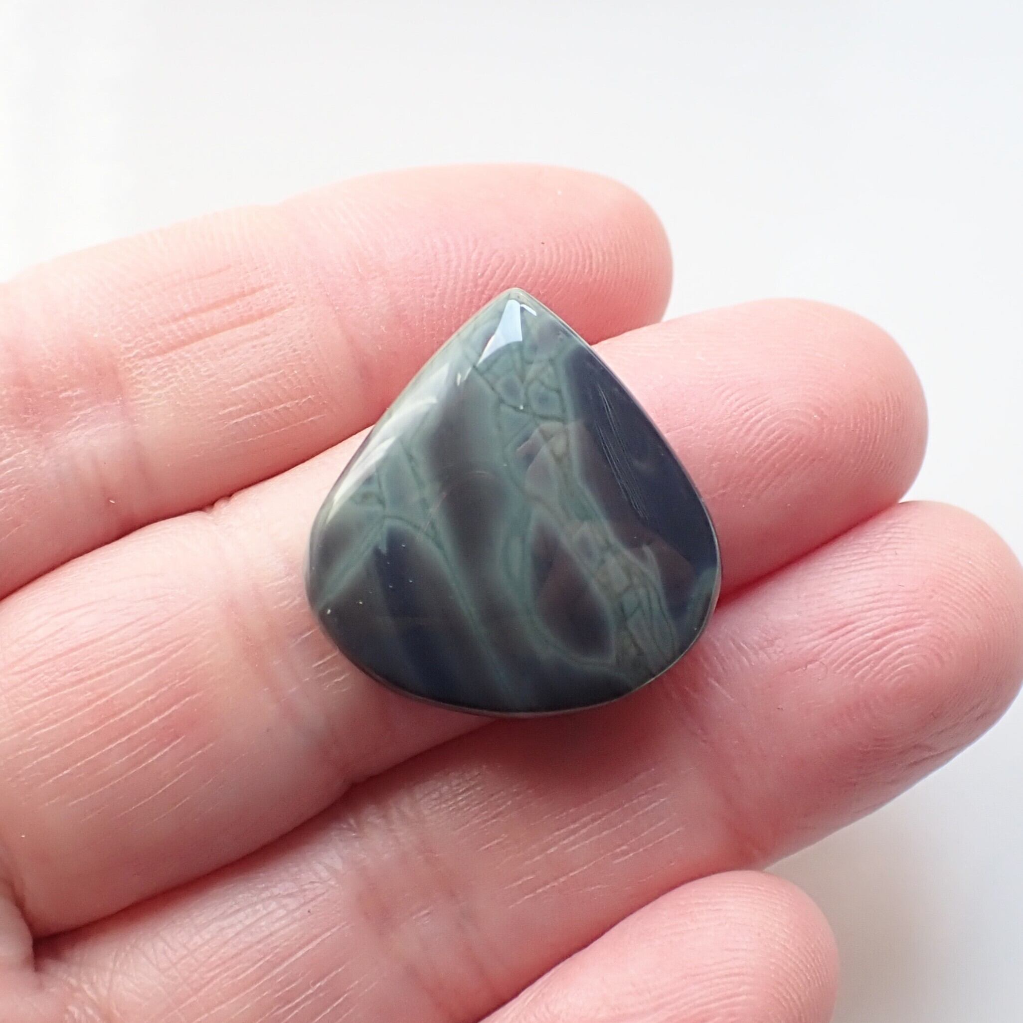 暗闇でひっそりと獲物を待つ蜘蛛の巣のような、はたまた発光生物が揺蕩う深海のようなミステリアスな雰囲気の石です。