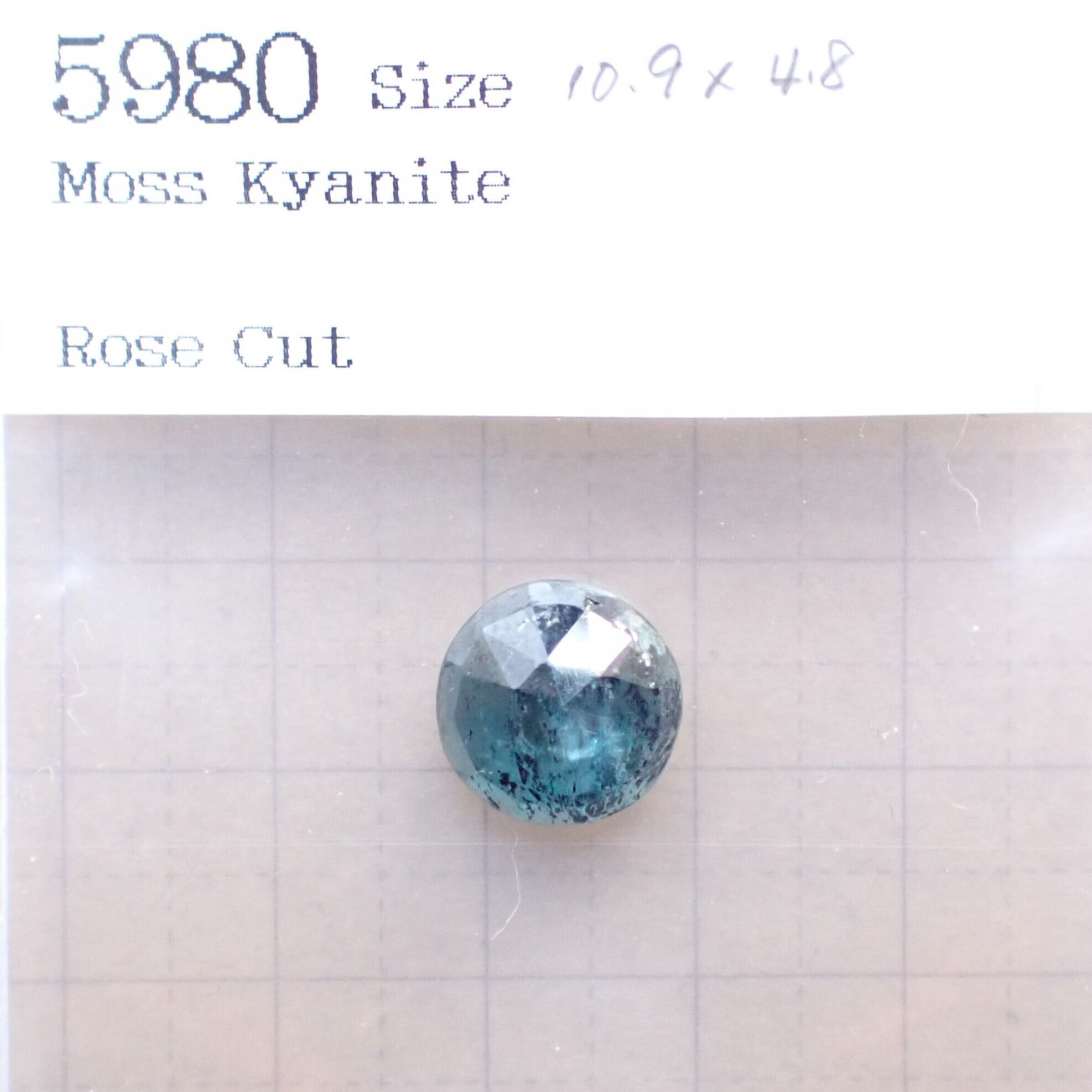黒いインクルージョンが散りばめられたティールブルーのカイヤナイトです。
