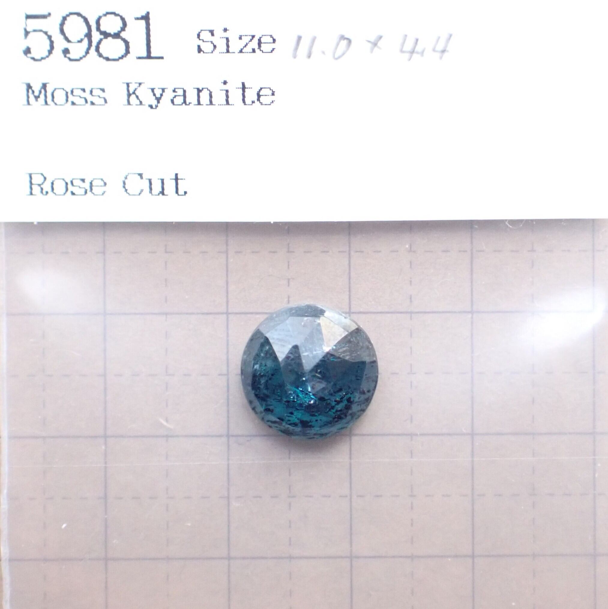 黒いインクルージョンが散りばめられたティールブルーのカイヤナイトです。