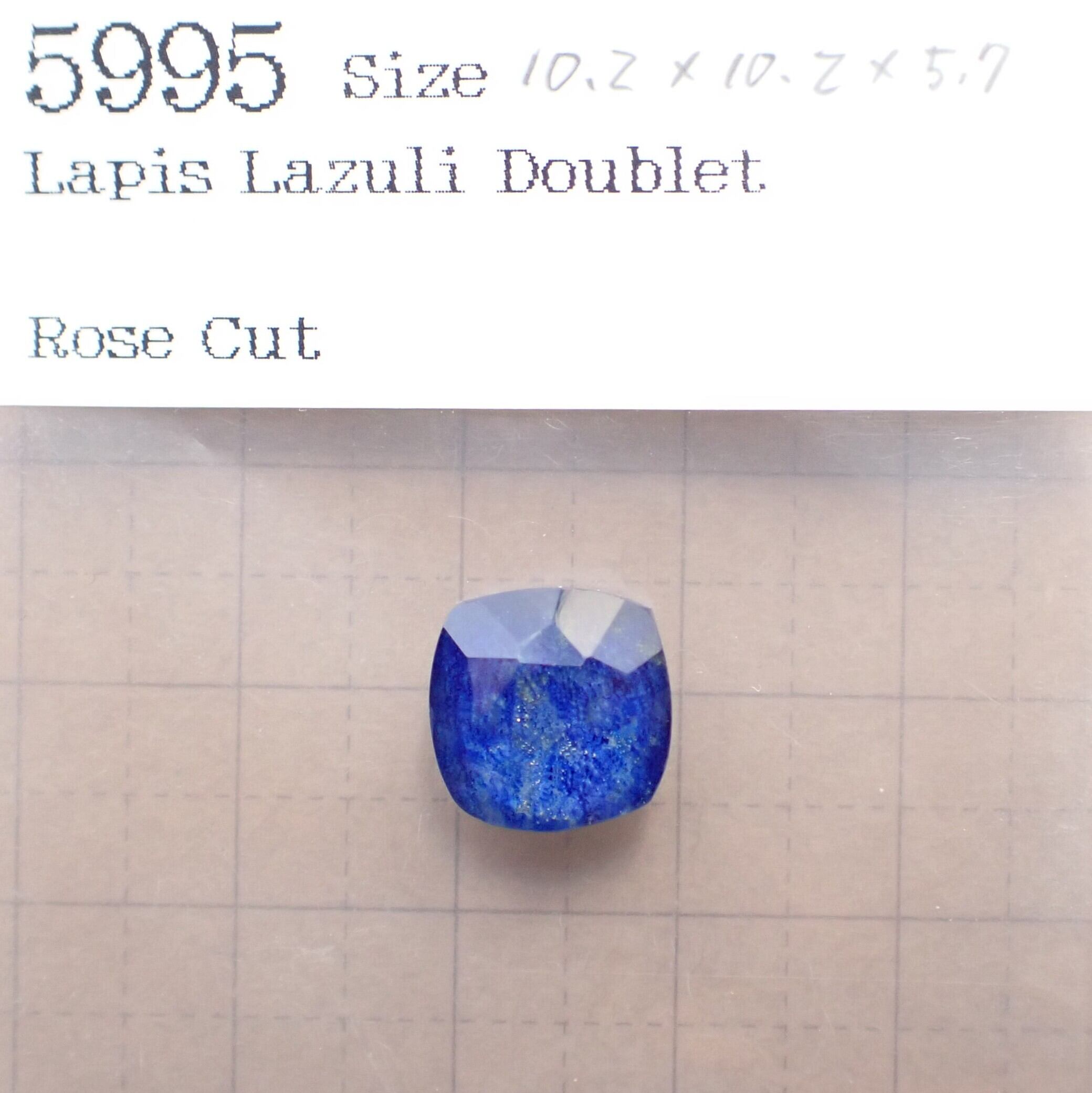 こちらは薄くスライスしたラピスラズリにローズカットが施されたクリスタルガラスを貼り合わせたものです。