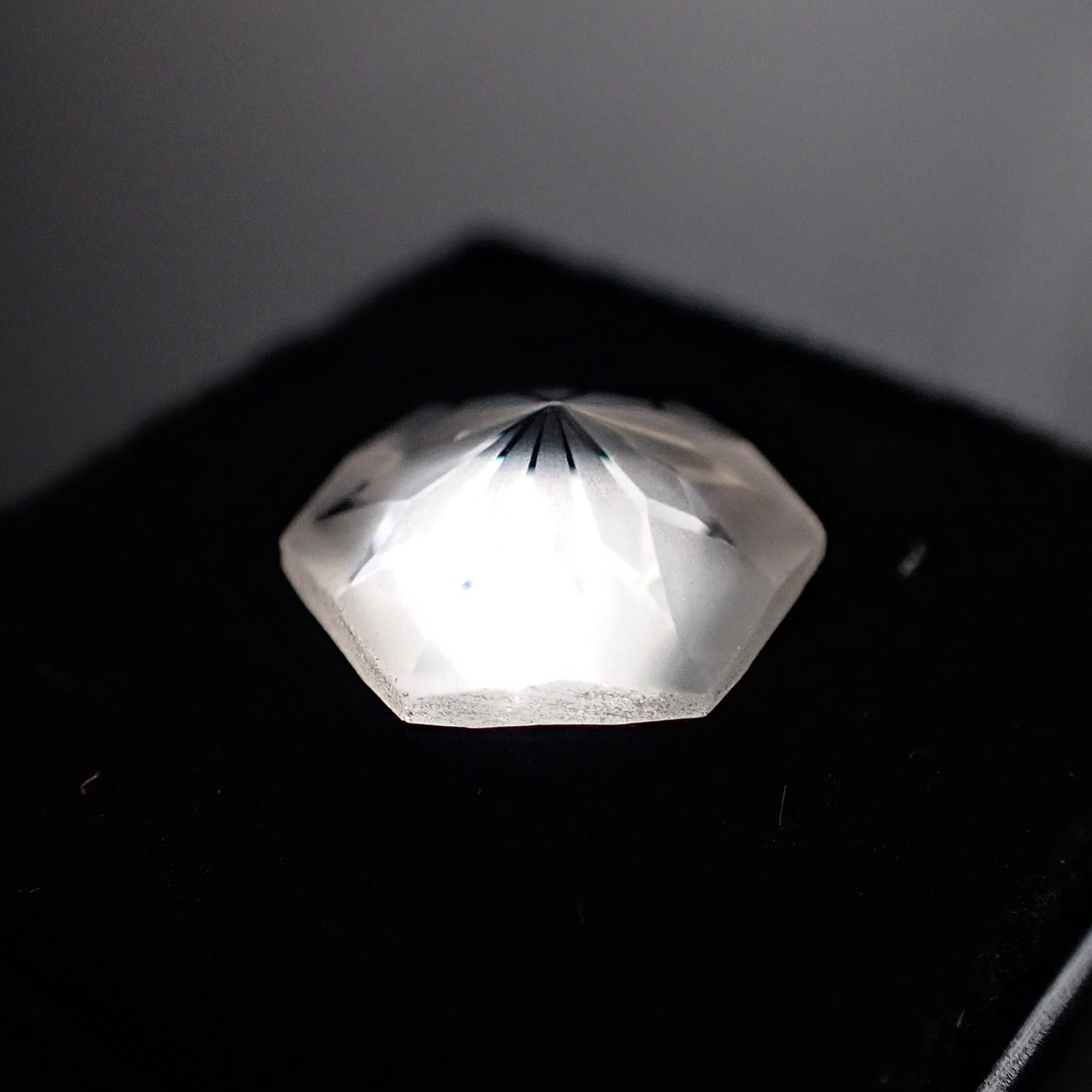 クリアなファセットカットの水晶に裏側から花のカービングが施してあります。
