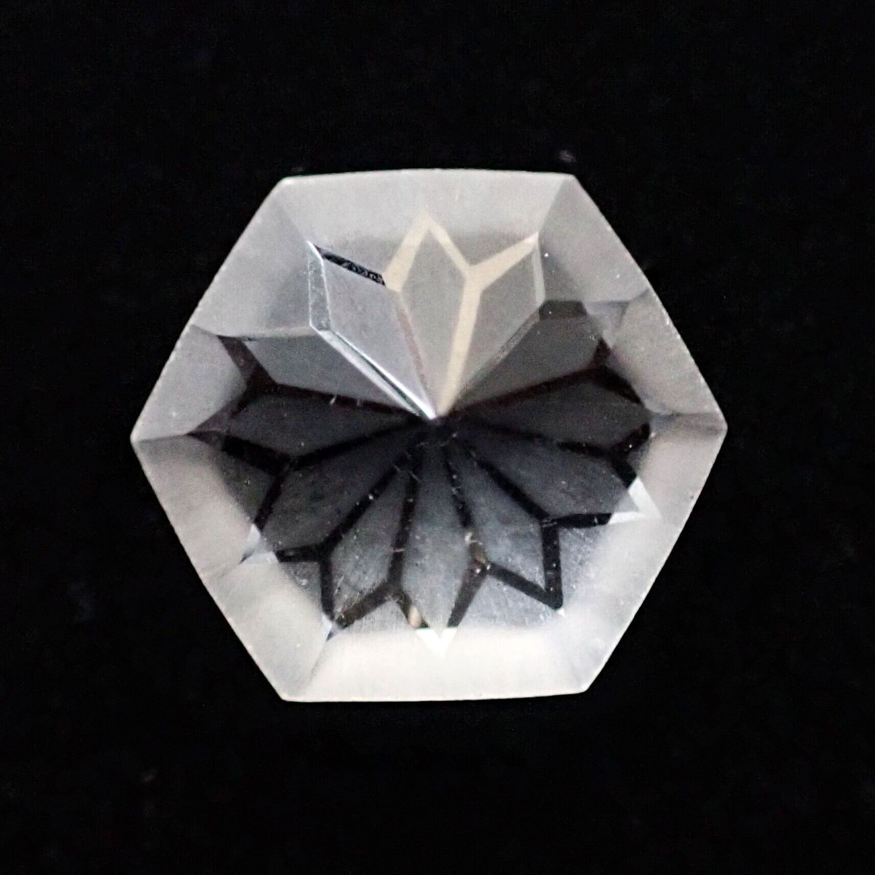 クリアなファセットカットの水晶に裏側から花のカービングが施してあります。